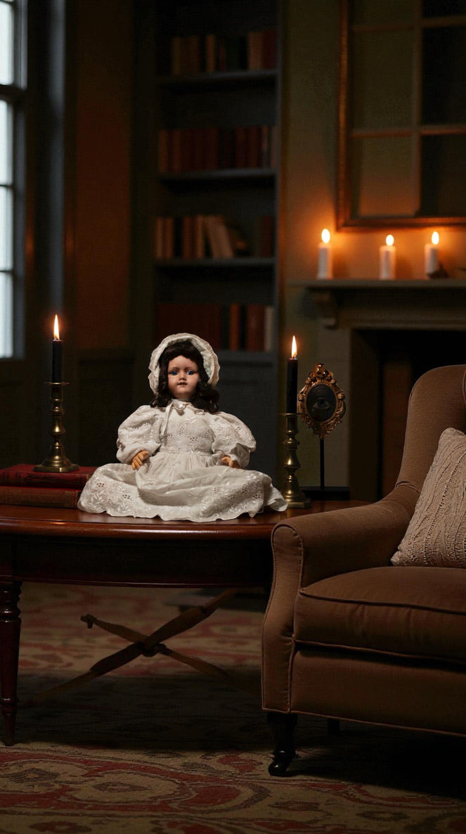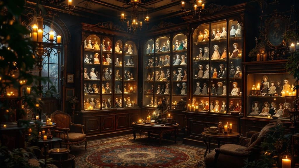 Imagine a dim Victorian house on a quiet street, its rooms filled with glass cabinets of dolls, their names engraved on tiny brass plates, lace yellowed with time. You can almost hear them whisper behind the glass.